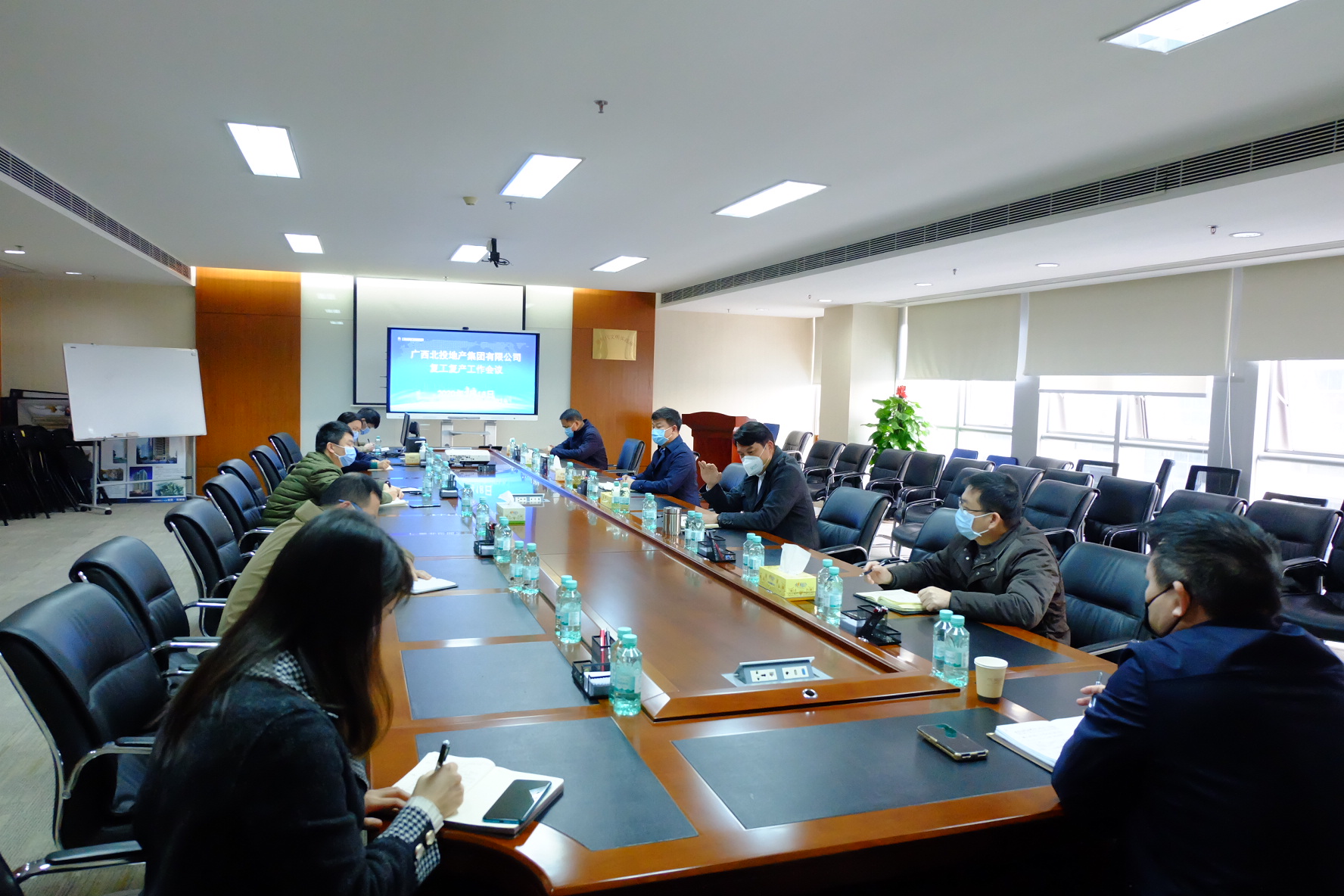 在五象智慧健康城項目部,左皓要求,一是要把防疫工作落到實處,做好返崗人員、出入人員的管控,不能流于形式;二是著眼復(fù)工復(fù)產(chǎn),督促施工單位建立農(nóng)民工健康檔案,及時了解農(nóng)民工信息,積極組織施工隊組,堅持“防疫、復(fù)工兩手抓,兩手都要硬”,確保項目按時復(fù)工;三是積極統(tǒng)籌謀劃工作安排,疫情當(dāng)前要靈活變通,分清工作輕重緩急,科學(xué)制定年度目標(biāo)倒排計劃;四是加強內(nèi)部管理,在疫情防控期間可對項目內(nèi)部制度、流程等進行梳理,進行查缺補漏,完善內(nèi)部管理流程;五是要加強學(xué)習(xí)提升,繼續(xù)落實導(dǎo)師帶徒制,會議強調(diào),五象項目要嚴(yán)加管控,做好復(fù)工審批工作,同時要加強成本管控、提升品質(zhì)、強化宣傳、積極推進銷售回款。